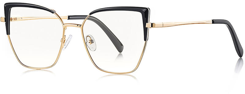 Techsuit Női Anti-Blue Light Szemüveg Techsuit Reflex PC (3156), Macskaszem, Fém Keret, AC Lencse - Arany/Fekete